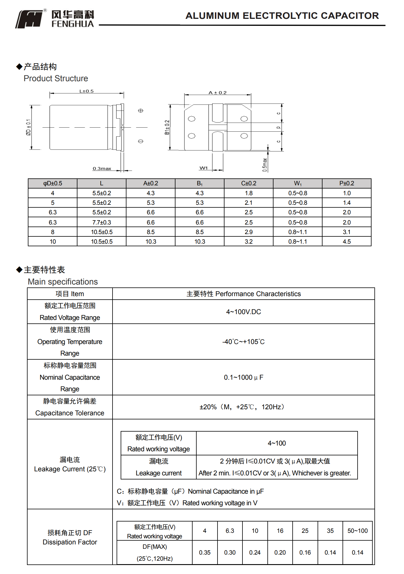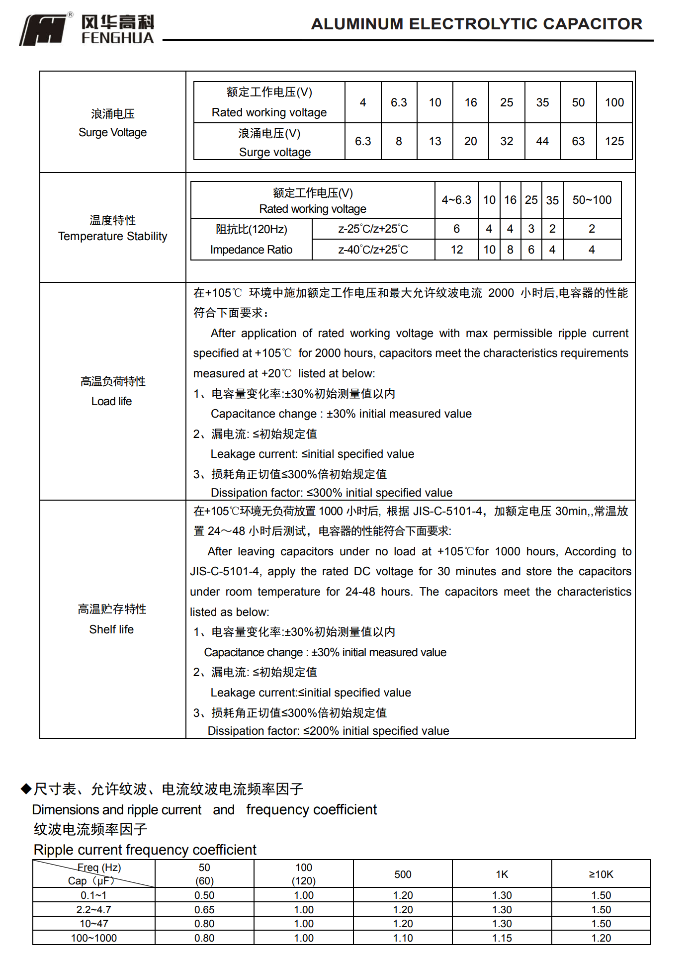 * 寿命: 105℃ 2000 小时