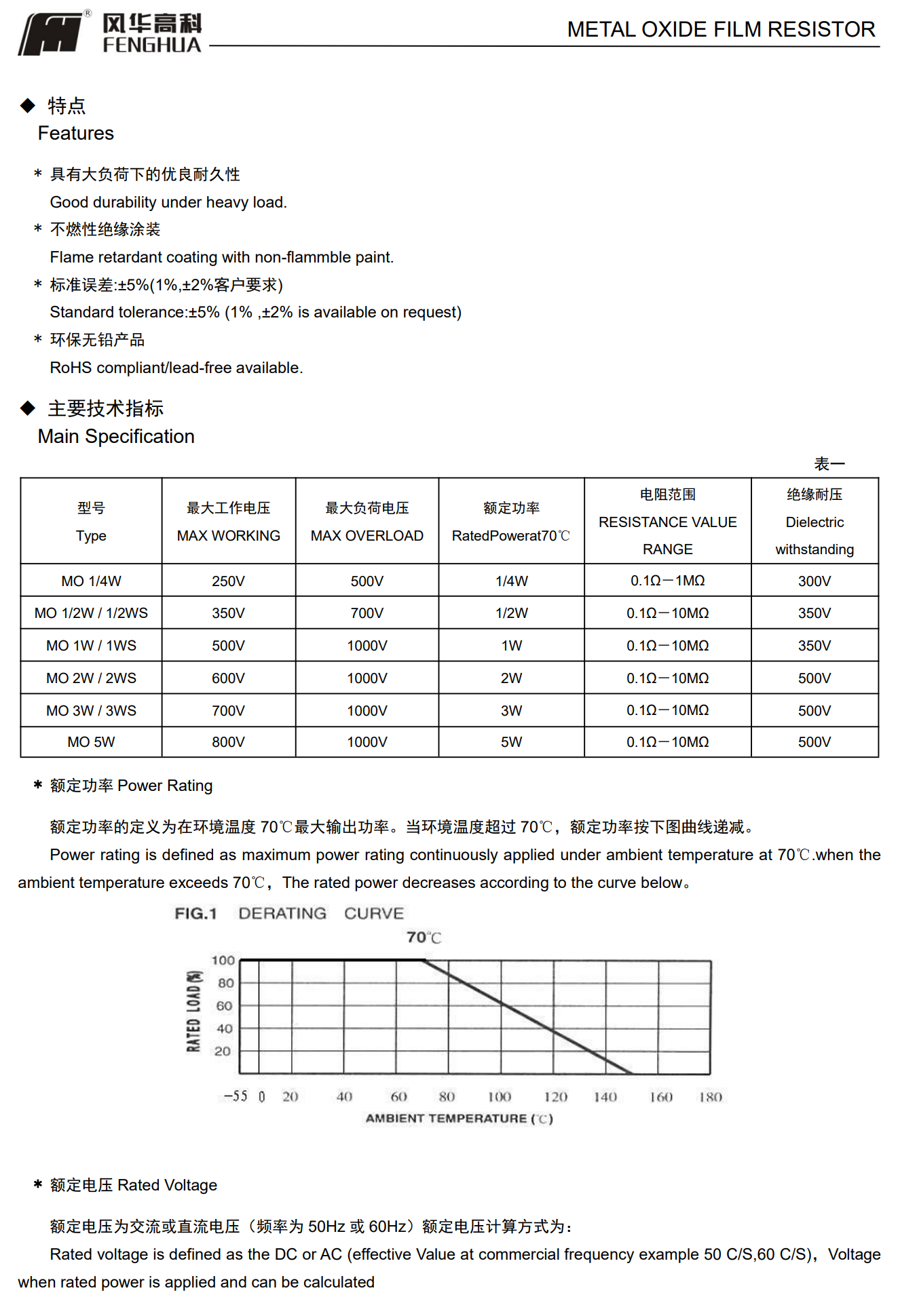 金属氧化膜电阻◆特征* 阻值范围宽,温度系数小、散热性能好、使用环境温度高、阻燃特性好、过负荷特性好* 环保无铅产品◆应用* 适用于各种交、直流电子电路中